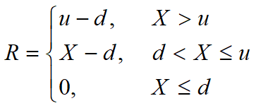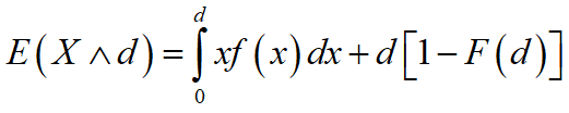 如果保单规定的免赔额为d,且对每一次保险事故,保险公司的最高赔款支出为u-d,则对每一次损失X,保险公司的实际赔款支出为: