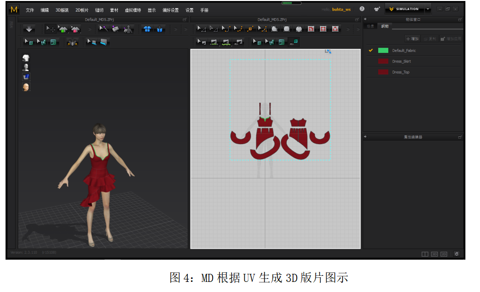 Marvelous Designer/CLO 3的动画模式提供了丰富的工具和功能,可以帮助您创建复杂的3D动画。以下是该软件的动画模式的主要特点和功能: (1) 时间轴:动画模式中,时间轴是一个非常重要的工具,它可以帮助您创建和编辑动画序列。您可以将不同的动画剪辑添加到时间轴中,并使用关键帧来控制动画的速度和变化。 (2)关键帧:关键帧是动画序列中的重要节点,它们可以帮助您控制动画的速度和变化。在动画模式中,您可以使用关键帧来添加、删除和编辑动画剪辑,并控制动画的播放速度和时间。 (3)运动路径:运动路径是动画剪辑的路径,它可以帮助您控制动画的运动和方向。在动画模式中,您可以创建、编辑和修改运动路径,并使用不同的变换工具来控制动画的形状和运动。 (4)动画控制器:动画控制器是用于控制动画播放的工具它可以帮助您控制动画的速度和方向。在动画模式中,您可以使用不同的动画控制器,如时间控制器、速度控制器等,来控制动画的播放和速度。 (5)预览和渲染:在动画模式中,您可以预览和渲染动画效果。您可以使用软件提供的预览工具来查看动画序列的效果,并在渲染时选择不同的渲染参数和选项,以获得最佳的动画效果。 总之,Marvelous Designer/CLO 3的动画模式提供了丰富的工具和功能,可以帮助您创建复杂的3D动画。通过熟练掌握这些工具和功能,您可以实现自己的创意和设计想法,并创造出更加逼真的动画效果。 3.UV编辑模式_根据UV生成3D版片 教学方法:讲授法、演示法(20分钟) (1)导入3D模型:在Marvelous Designer/CLO 3软件中,首先需要导入一个3D模型,该模型将成为生成版片的基础。 (2) 进入UV编辑模式:选择3D模型,在工作区的右侧选择“模拟”选项卡中的“UV编辑”按钮,进入UV编辑模式。 (3)解压UV:在UV编辑模式下,点击“解压UV”按钮,软件将对3D模型进行UV解压缩操作。解压UV是为了将3D表面展开为2D平面,以便进行纹理编辑。 (4)调整UV:使用软件提供的编辑工具(如移动、旋转、缩放等),对解压后的UV进行调整,以最大程度地优化纹理映射。 (5)创建材质:在编辑UV的过程中,可以创建和编辑与版片相关的材质,例如纹理、颜色等,以达到所需效果。 (6)生成3D版片:完成版片的编辑和调整后,点击“生成3D版片”按钮,软件将根据编辑好的UV纹理信息,重新将2D纹理映射到3D模型上,形成最终的3D版片。 4.织物面板和织物属性编辑 教学方法:讲授法、演示法(30分钟) (1)打开Marvelous Designer/CLO 3软件,在主界面上找到织物面板(通常标识为Fabric Panel)并点击打开。 (2)在织物面板中,您可以看到当前项目中所有织物的列表,包括名称、材质和属性。 (3)创建新的织物:在织物面板中,通常有一个添加织物的按钮(通常是一个加号图标),点击它来创建一个新的织物。