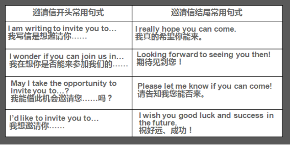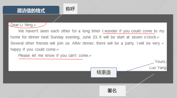 Master the sentences used in an invitation letter. 掌握邀请信的常用句式。