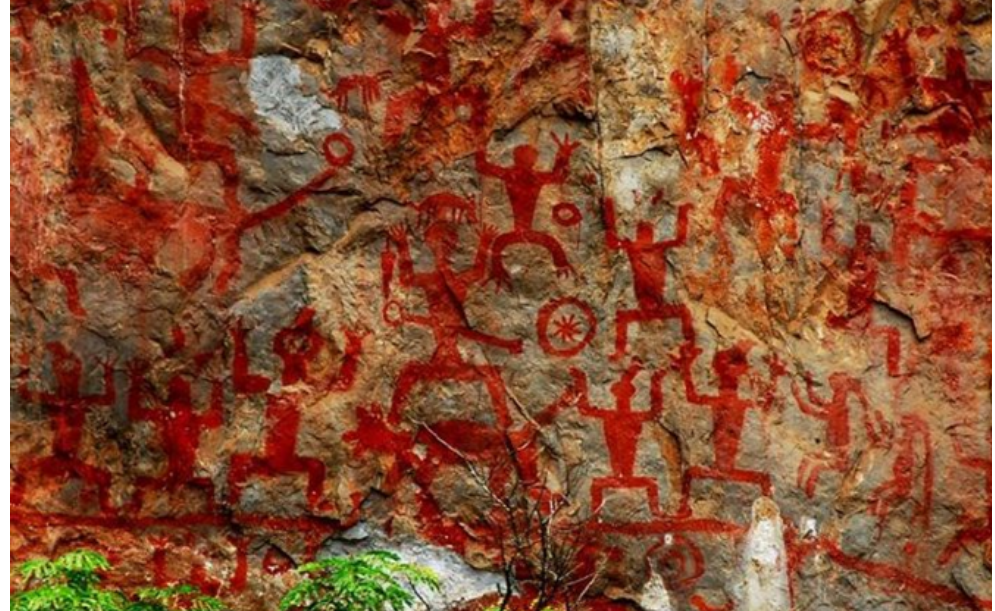 The Zhuang minority's frescoes carved on the steep cliffs are of extreme Zhuang characteristics. Figures, beasts and some other patterns carved 2,000 years ago will make everyone appreciate the image of their ancestors and the superb technique.