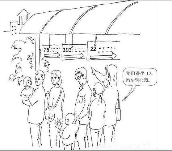 指导语:每一路公交车都按照规定的路线行走。乘车时,先要搞清楚车行方向。候车要站在站台上,看清站名,找准车次,避免乘错车。上车要遵守秩序,排队上车,先下后上。若乘坐无人售票的公交车,事先要准备好零钱,从前门上,后门下。
