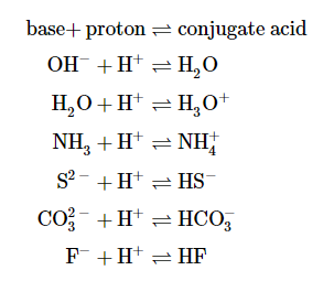 We call the product that results when a base accepts a proton the base’s conjugate acid. This species is an acid because it can give up a proton (and thus re-form the base):