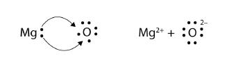 In electron transfer, the number of electrons lost must equal the number of electrons gained. We saw this in the formation of NaCl. A similar process occurs between Mg atoms and O atoms, except in this case two electrons are transferred: