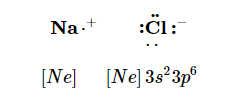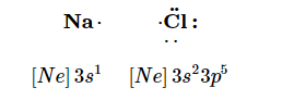 Consider an Na atom in the presence of a Cl atom. The two atoms have these Lewis electron dot diagrams and electron configurations: