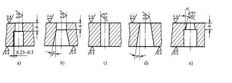 The patterns of the die cutting edge are illustrated in Fig. 3-13 (a)(b) (c) are the dies with the straight wall cutting edge. The strength of thecutting edge is high, the dimension of its working portion keeps unchangedafter mending and its manufacture is convenient. It is suitable for stampingthe workpieces with complex shape or high tolerance demand. But the waste orthe workpiece in such circumstances is prone to be accumulated inside the holeof the cutting edge, so increasing the expanding force, the ejecting force andthe wearing of hole wall. The worn cutting edge forms the shape of inversecone, which may induce the workpiece jumping from the opening-mouth of the holeto the surface of the die, and cause difficulty in operation. The Fig.3-13 (a) type cutting edge of die is suitable for the circular workpiece, the die whichthe workpiece or waste needs to be ejected, or the compound blanking die. The Fig.3-13 (b) type is suitable for the non-circular workpiece.