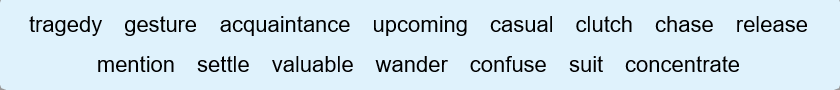 11. The elderly man had to clutch a chair forsupport.