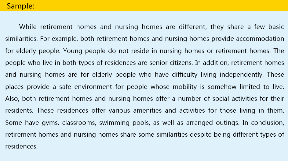 Topic sentence: While retirement homes and nursing homes are different, they share a few basic similarities.