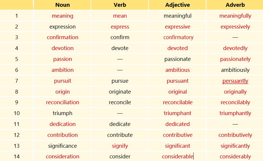 Look back over the passage, or consult your dictionary to find the missing word forms in the chart. After completing the chart, for each sentence below, look at the row in the chart with the same number, and choose the correct word formto complete the sentence.