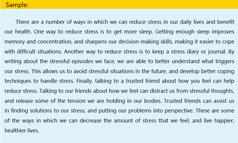 Topic sentence: There are a number of ways in which we can reduce stress in our daily lives and benefit our health.