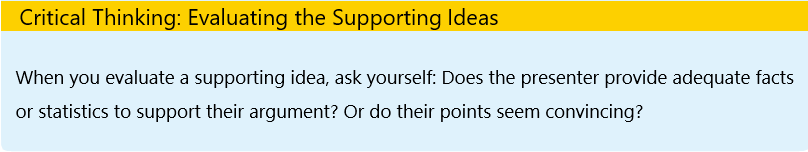 Organize your notes, then have a conversation with your partners to find out more details if necessary. List the topic and main supporting ideas for your presentation.