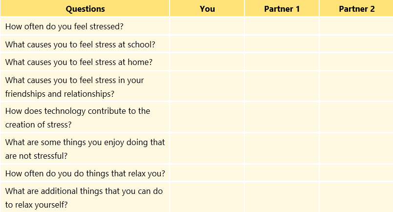 Based on what you have learned in this unit, consider the ways in which one can reduce daily stress and live a positive life. What is your advice on how to lead amore relaxing life? Follow the steps below, and present your thoughts to the class.
