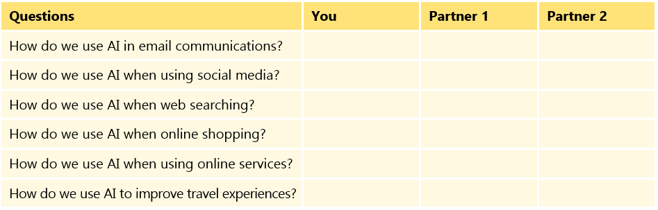 Consider what you have learned in this unit, and then develop a presentation about artificial intelligence in our daily lives. Discuss three examples of AI we areal ready using in our day-to-day lives, whether online or offline. Please follow the steps and give your presentation to the class.