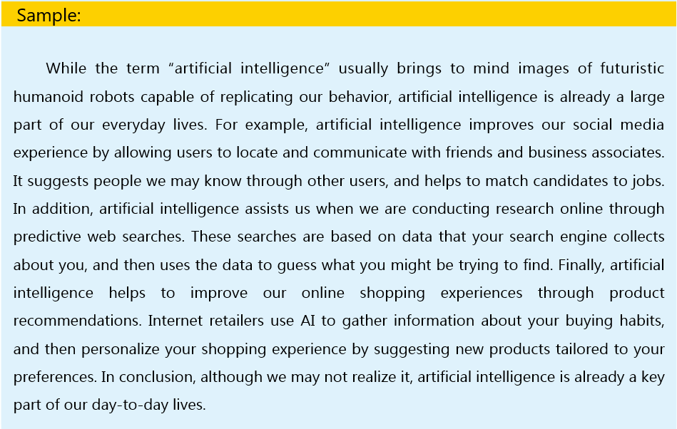 Topic sentence: While the term “artificial intelligence” usually brings to mind images of futuristic humanoid robots capable of replicating our behavior, artificial intelligence is already a large part of our everyday lives.