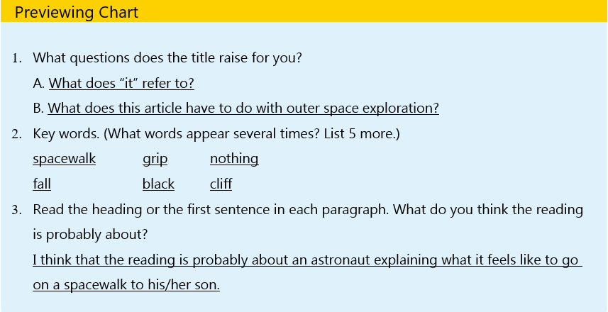 要是有人吃了一些不同寻常的肉,别人会问:“这肉是什么味道呢?”人们通常会说像鸡肉;但是,他们心里清楚,这肉尝起来真的不像鸡肉。你自己也试一下。牛肉尝起来是什么味道呢?你的回答是?猪肉?鸡肉?不。牛肉尝起来就像牛肉。太空行走是什么样子呢?就像太空行走。但是,让我给你一个“有点像鸡肉”的答案,这样你就至少对它有点感觉。