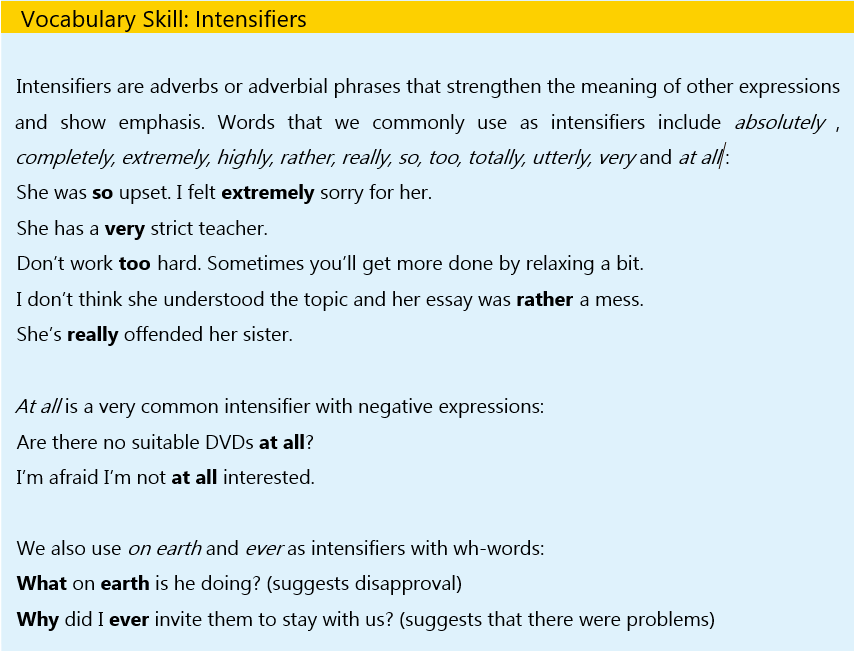Learn intensifiers. Choose the correct intensifiers in the box to complete the following sentences. More than one answer is possible.