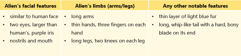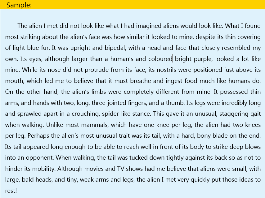 Suppose you metan alien. Using your imagination, describe its appearance.