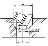 柱形锪钻起主要切削作用的是端面刀刃,螺旋槽的斜角就是它的前角(γo=βo=15°),后角αo=8°。柱形锪钻前端有导柱,导柱直径与工件上的孔为紧密的间隙配合,以保证有良好的定心和导向。一般导柱是可拆的,也可把导柱和锪钻做成一体。