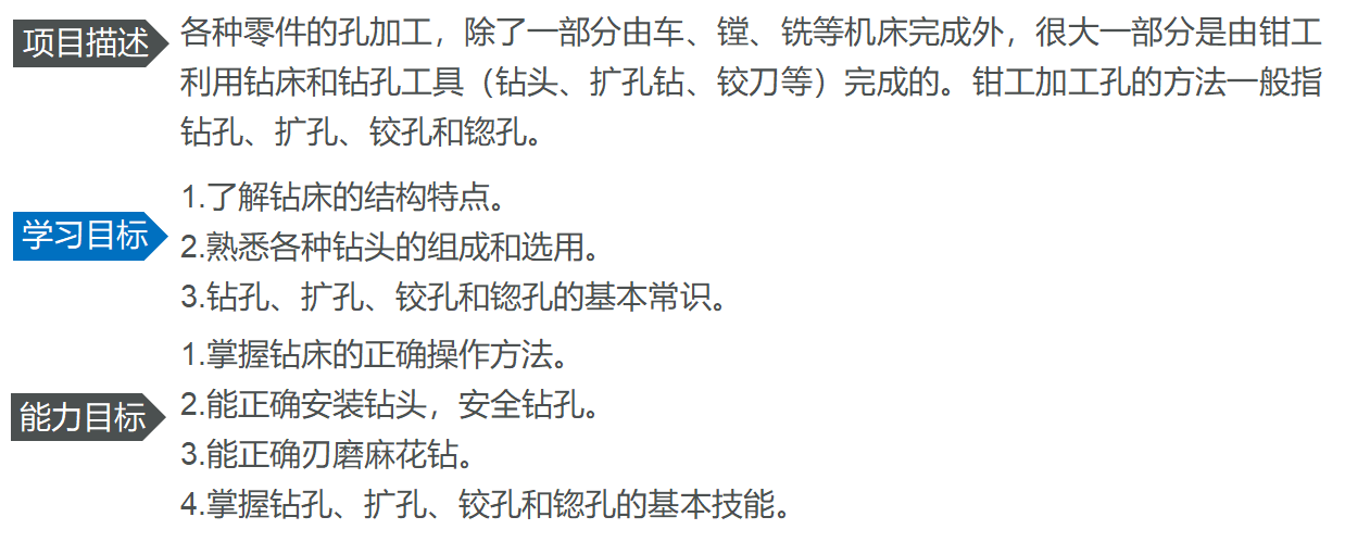 学习方法:教学视频学习、微课学习、章节自测、扩孔锪孔实践训练。