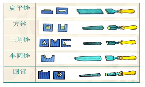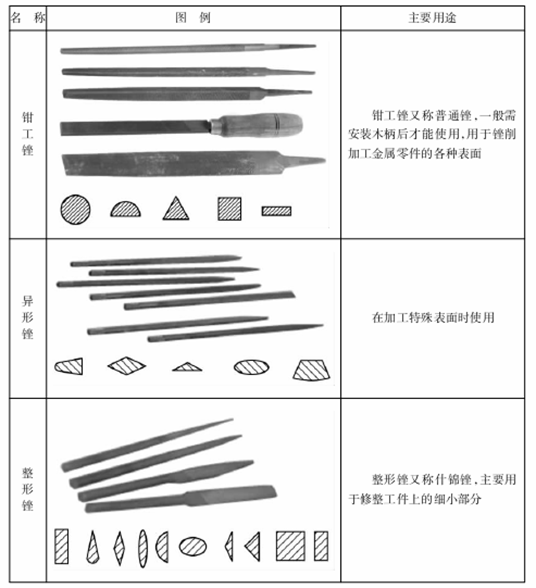 学习重点:1. 介绍锉刀的类型和规格;学会根据加工步骤选择相应规格的锉刀。