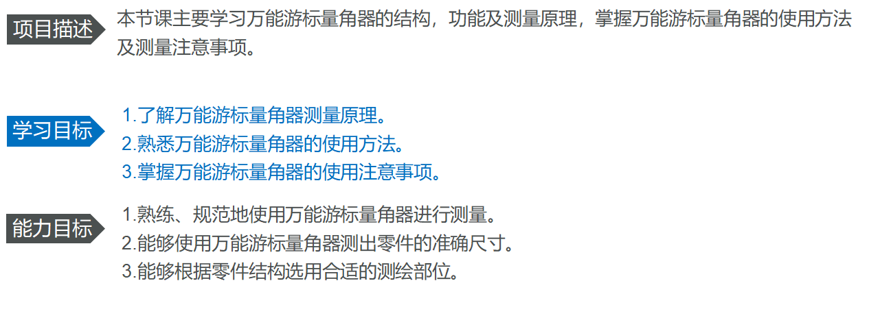 学习难点:万能游标量角器使用方法及测量操作要点。