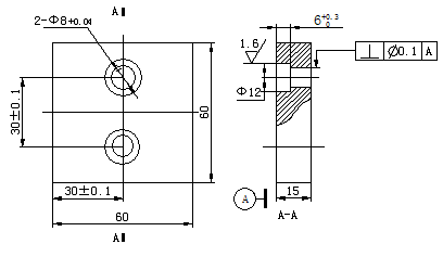 技术要求:毛坯尺寸:60×60×15(各面机加工)。