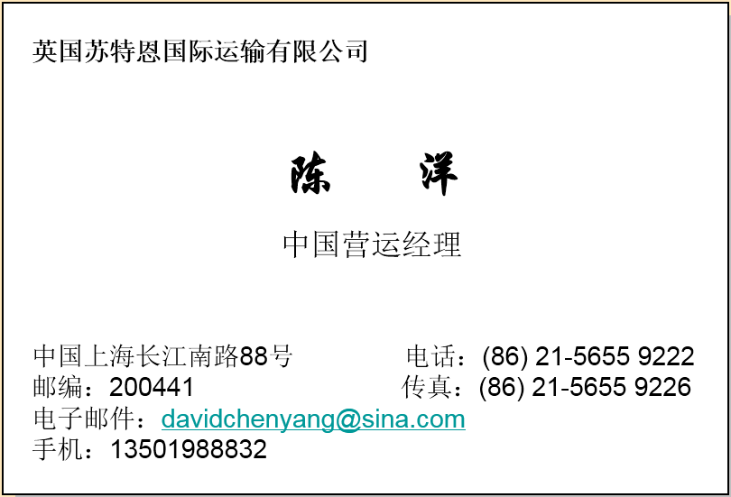 Please write an English business card for Mr. Chen Yangbased on the Chinese one given below.