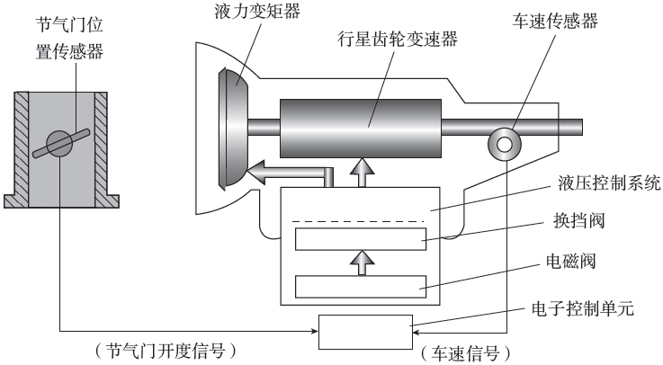 2、自动变速器主要由液力变矩器、齿轮变速机构、换挡执行元件、液压控制系统、电子控制系统等组成。