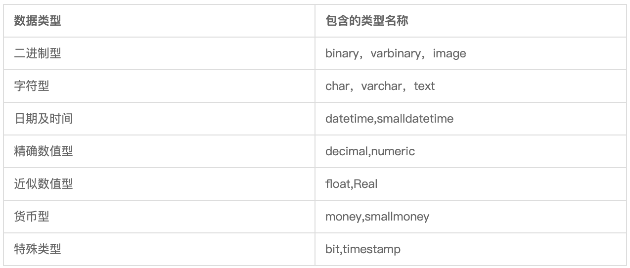 (1)binary:存储空间固定的数据类型,指定长度<8000;