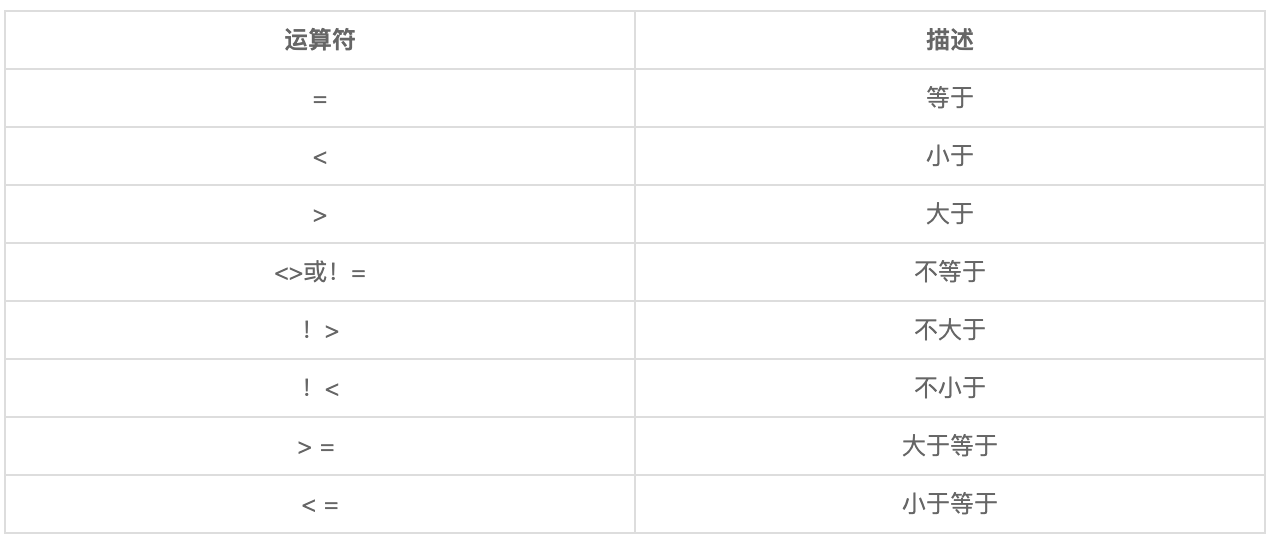 在SQL Server中,为WHERE字句指定条件时,支持的运算符如下: