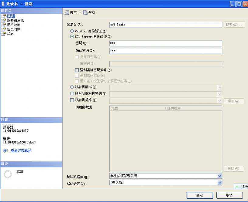 •对于登录名来说,可以选择其是否成为某个固定服务器角色的成员