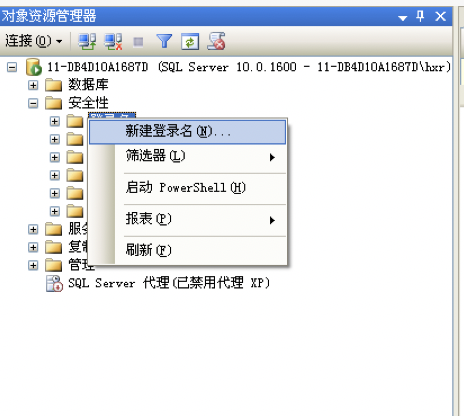 (1)在MicrosoftSQL Server Management Studio中删除登录账户