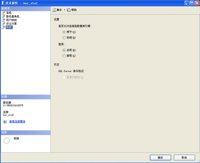 (3)在“登录属性”对话框左侧列表中选择“状态”选项,打开“状态”页面