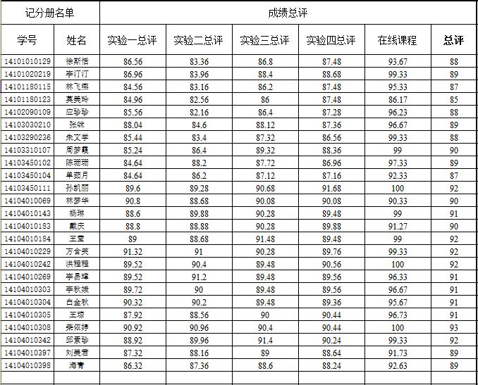 主题实验一成绩考核结果