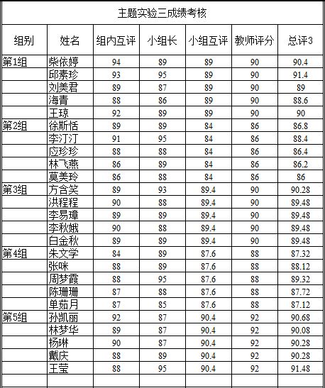 主题实验三成绩考核结果