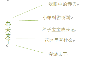 我们的主题墙是由5个小主题所构成的,分别是:“我眼中的春天,小蝌蚪游啊游,种子宝宝成长记,花园里有什么,春游去了”。列举几个主题活动方案:(1)花园里有什么、(2)我眼中的春天、(3)种子宝宝成长记