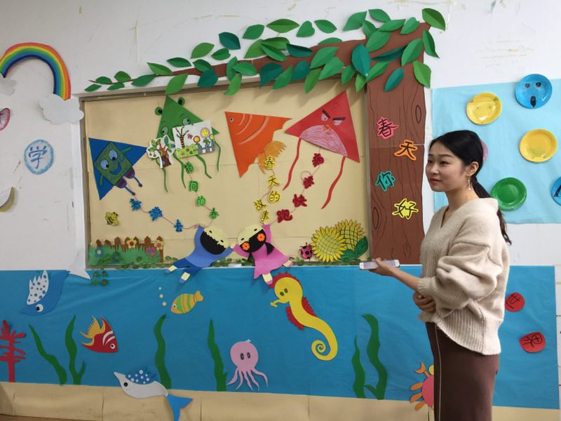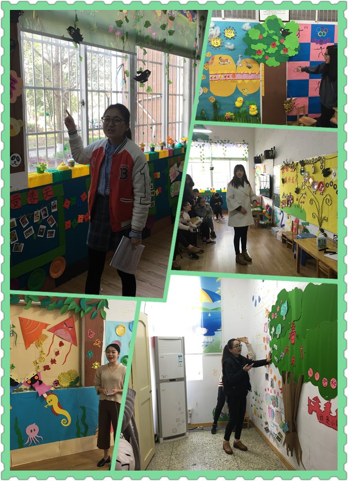 这次以“春天来了”为主题的环境创设,充分体会到主题墙在幼儿园中占据的重要性。其《幼儿园教育指导纲要》中明确指出:“应通过环境的创设和利用,有效地促进幼儿的发展。”其专业老师为了进一步让我们了解这门课程,亲自带我们参观所属城市的实验幼儿园总园,分别请中班和大班的专业教师为我们讲解,参观基地。