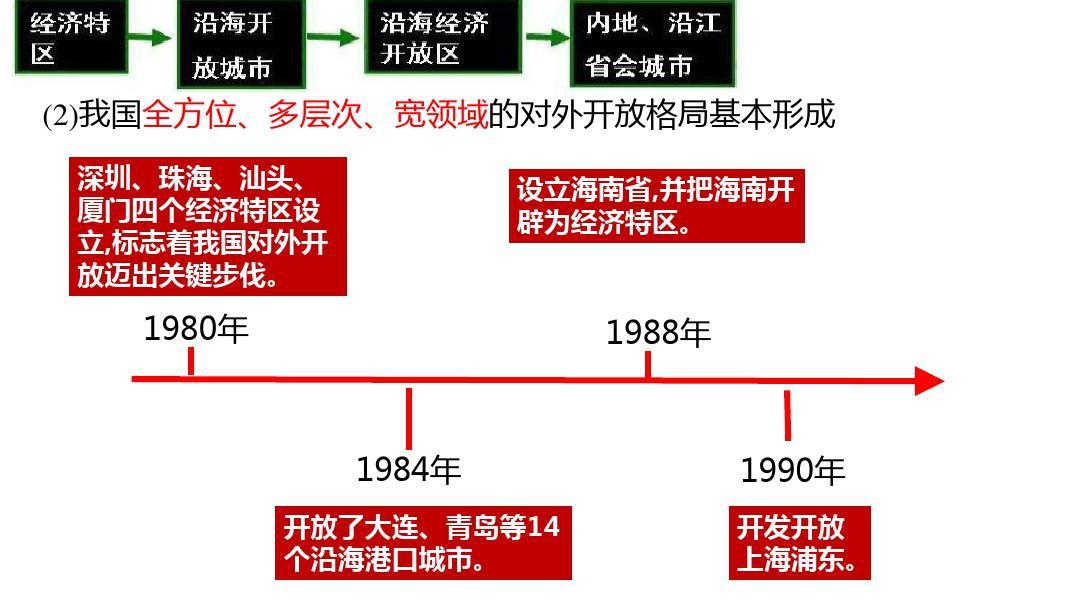 (4)1990年,开发开放___________。至此,全方位、____________、____________的对外开放格局基本形成。