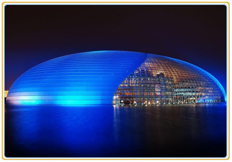 中国国家大剧院位于北京市中心天安门广场西,人民大会堂西侧,西长安街以南,由国家大剧院主体建筑及南北两侧的水下长廊、地下停车场、人工湖、绿地组成,总占地面积11.89万平方米,总建筑面积约16.5万平方米,其中主体建筑10.5万平方米,地下附属设施6万平方米,总投资额26.88亿人民币。