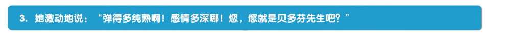 “多纯熟”,是说弹奏的技能熟练;“多深”,是说把曲子里的感情充分表现出来了。这样高超的演奏技巧,只有贝多芬才行,而贝多芬正在附近旅行演出,所以姑娘猜想弹奏者便是贝多芬。姑娘的话说明她对音乐有很强的理解力,不仅爱音乐,而且懂音乐。 |