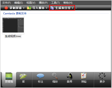 在编辑器的窗口中单击“生成分享”下拉列表会出现分享选项,其中包括分享到Screencast.com、分享到Google Drive、分享到YouTube和分享到我的位置四个选项,用户根据自己的需要选择不同的分享地址,将制作好的微课视频进行上传。