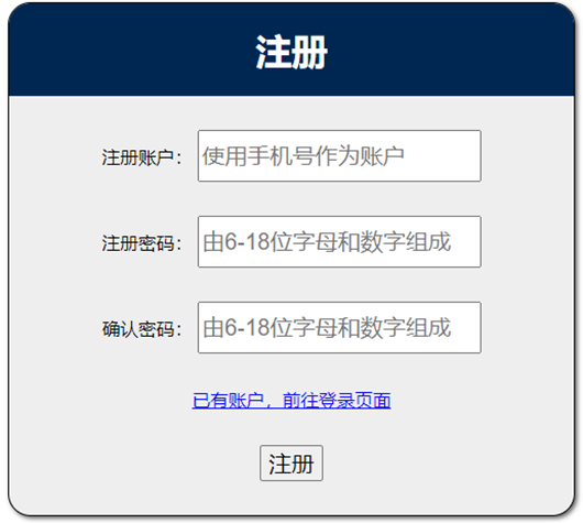 (6)表单内的“注册账户”文本框和“注册密码”“确认密码”密码框高度为字体大小的2倍。