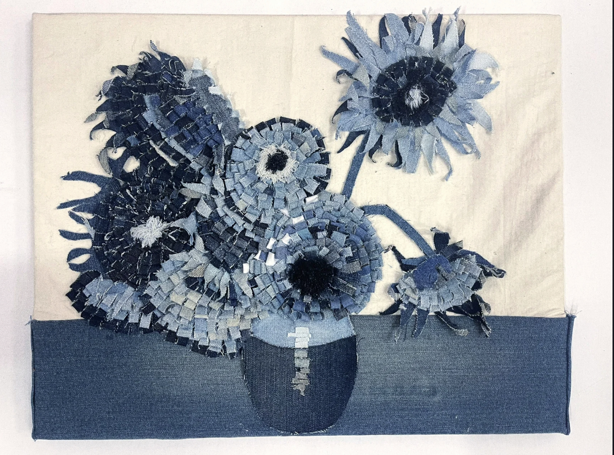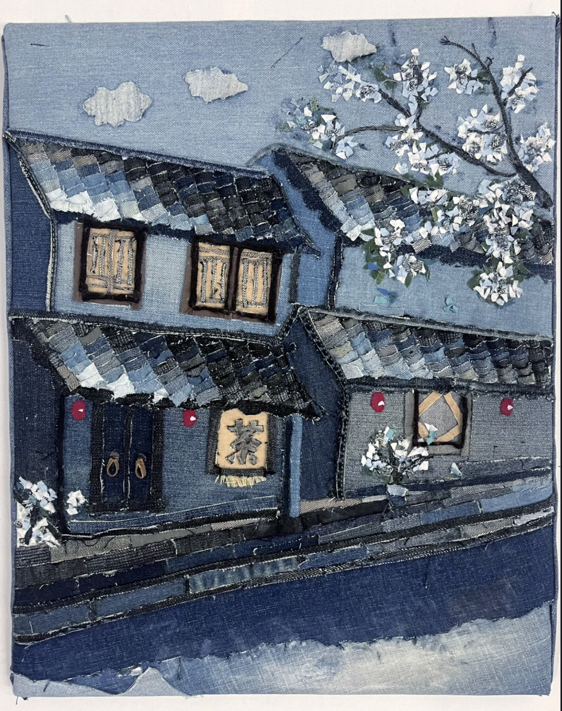 布贴是布平面造型的主要形式,它是经剪切、拼贴、重组而构成的具有装饰性的布质画面。布贴不是目然或形象的再现,而是巧妙利用布料自身的质地、纹理、图案、色彩、光泽等进行再创作的过程,具有画笔所不能取代的艺术效果,是艺术智慧的结晶。具体而言,布贴是以纺织品的边角料为媒材,以剪刀为笔,布为色,依据设计意图和一定的艺术风格加工而成的造型艺术形式。
