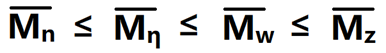4) 黏均分子量:由稀溶液粘度法测得,无明确物理意义(式中:a是常数,取值为0.5-0.8)。