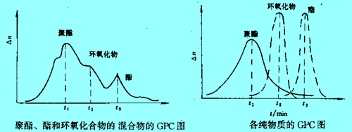 一般实际中使用的高分子材料都不是单纯的聚合物,而是添加了各种助剂的材料。助剂的性能和用量在很大程度上决定了高聚物材料的价值和寿命。助剂的种类很多,有增塑剂、稳定剂、抗氧化剂、橡胶的硫化促进剂以及各种填充物等。这些助剂都是小分子化合物,在GPC谱图上的小分子质量段出峰,常与聚合物的峰分开。如使用示差折光、紫外检测器,可求得这些助剂的大致相对分子质量和含量。例如研究聚酯中的增塑剂和环氧化物。