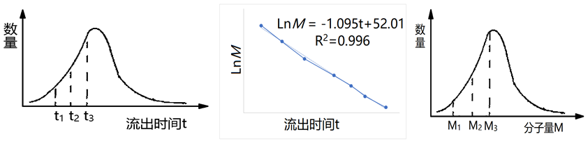 通过分离和检测后得到的GPC谱图尚不能给出关于分子量的直观信息,还需要通过曲线校正确定各分级(流出时间或淋洗体积)产物的分子量。关于GPC曲线校正较多,此介绍一种常用的校正方法——单分散标样校正法法