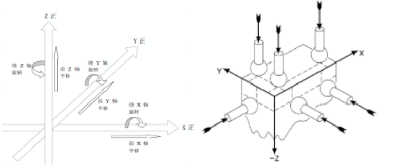 在空间直角坐标系中 ,任意零件均有六个自由度 ,即 :分别沿X、Y、Z轴平移( x,y,z )和分别绕X、Y、Z轴旋转 (u,v,w)。只要限制住6个自由度,就可以建立一个固定的坐标系。
