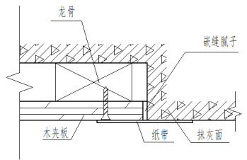 图6-3 石膏板与木夹板对缝节点