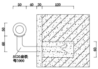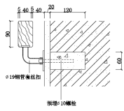 靠墙扶手一般采用硬木、塑料和金属材料制作,其中硬木和金属靠墙扶手应用较为普通。靠墙扶手通过连接件固定于墙上,连接件通常直接埋入墙上的预留孔内,也可用预埋螺栓连接,如图7-9~图7-10所示。
