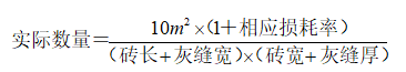 (9)内外墙贴面砖的规格与定额取定规格不符,数量应按下式确定: