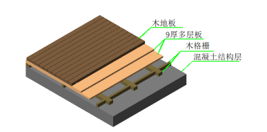 011104002001 | 竹、木(复合)地板 | 1.龙骨材料种类、规格、铺设间距 :60mm×50mm楞木中距400mm,50mm×50mm横撑中距800mm 2.基层材料种类、规格 :双层9mm厚多层板 3.面层材料品种、规格、颜色 :实木地板(详细要求根据设计选样) | m2 | 12.91 |